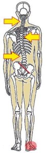 足の捻挫をかばっていた膝、股関節、骨盤、腰、肩、首に今度は痛みが起こります。かばっていた部分に痛みが出る頃には、過去に捻挫したことなどほとんどの人が忘れてしまっています。